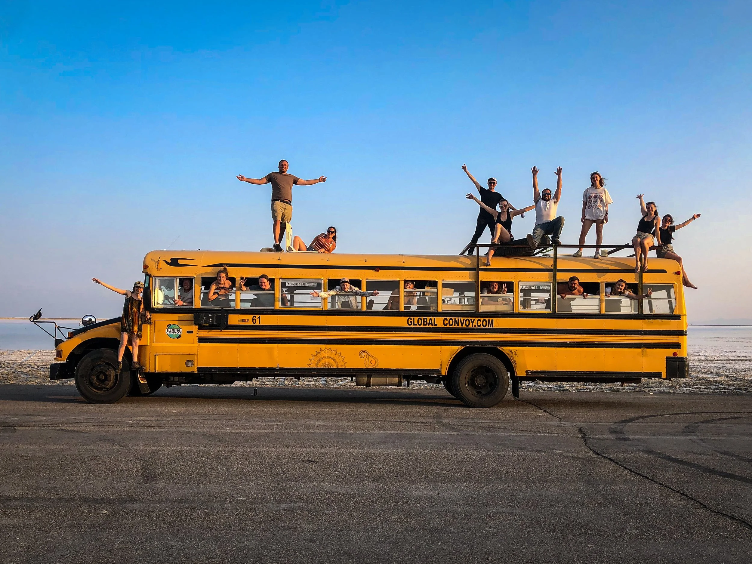 Beforehand, they conducted a 1 month test run of living on the school bus with 16 strangers while driving from Chicago to Las Vegas over 1 month. (Watch here)